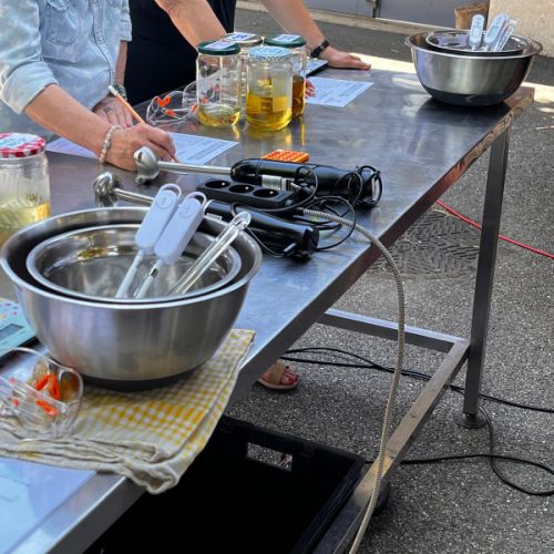 Un point d'eau, une prise électrique, un peu d'espace pour notre remorque-atelier-savonnerie-mobile, une date posée dans l'agenda, quelques amis (ou futurs amis) et vous voilà prêt à recevoir la savonnerie mobile !