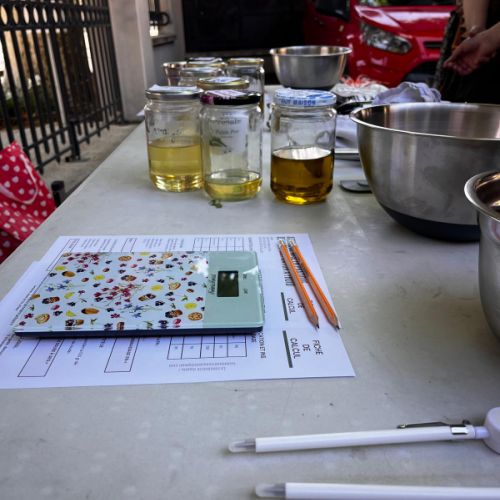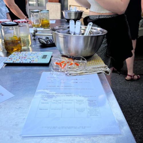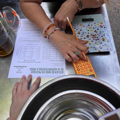 L'atelier dure un peu plus de 2 heures et chacun se fabrique 750 grammes de savon fait maison. Dans le commerce, le type de savons que nous vous apprenons à réaliser coûte environ 9 €/100g donc, faîtes des économies ! Avec la savonnerie mobile, nous sommes à peu près 40 % moins cher (vive le bénévolat ! ) et vous repartez avec du savon pour toute la famille, un sacré savoir-faire et une bonne dose de fierté.