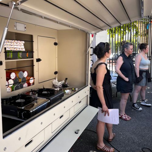 Un point d'eau, une prise électrique, un peu d'espace pour notre remorque-atelier-savonnerie-mobile, une date posée dans l'agenda, quelques amis (ou futurs amis) et vous voilà prêt à recevoir la savonnerie mobile !